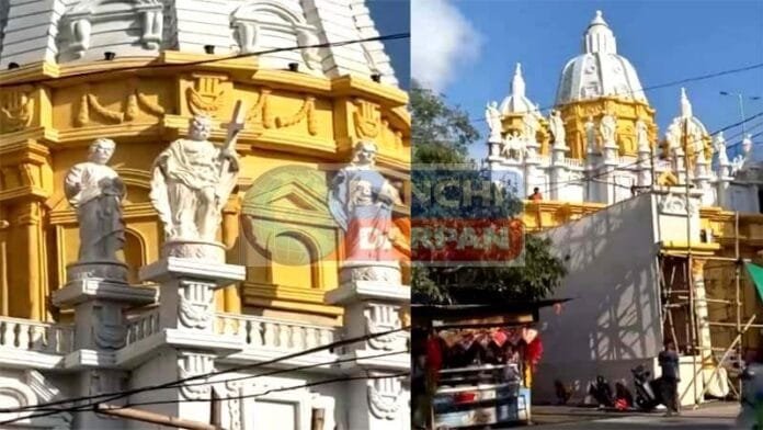 रांची के रातू रोड पर आकाशवाणी केंद्र के ठीक बगल में पहाड़ी मंदिर के नीचे स्थित यह दुर्गा पूजा पंडाल ‘आरआर स्पोर्टिंग क्लब रातू रोड’ के नाम से जाना जाता है। हर साल यहां दुर्गा पूजा का आयोजन बड़े धूमधाम से होता है, जहां हजारों श्रद्धालु माता दुर्गा के दर्शन के लिए उमड़ते हैं। लेकिन इस बार पंडाल की थीम ने सबको हैरान कर दिया। 19 सितंबर को जब लोग पंडाल देखने पहुंचे तो उन्होंने पाया कि इसका पूरा डिजाइन ईसाई चर्च की नकल करता हुआ लग रहा है।